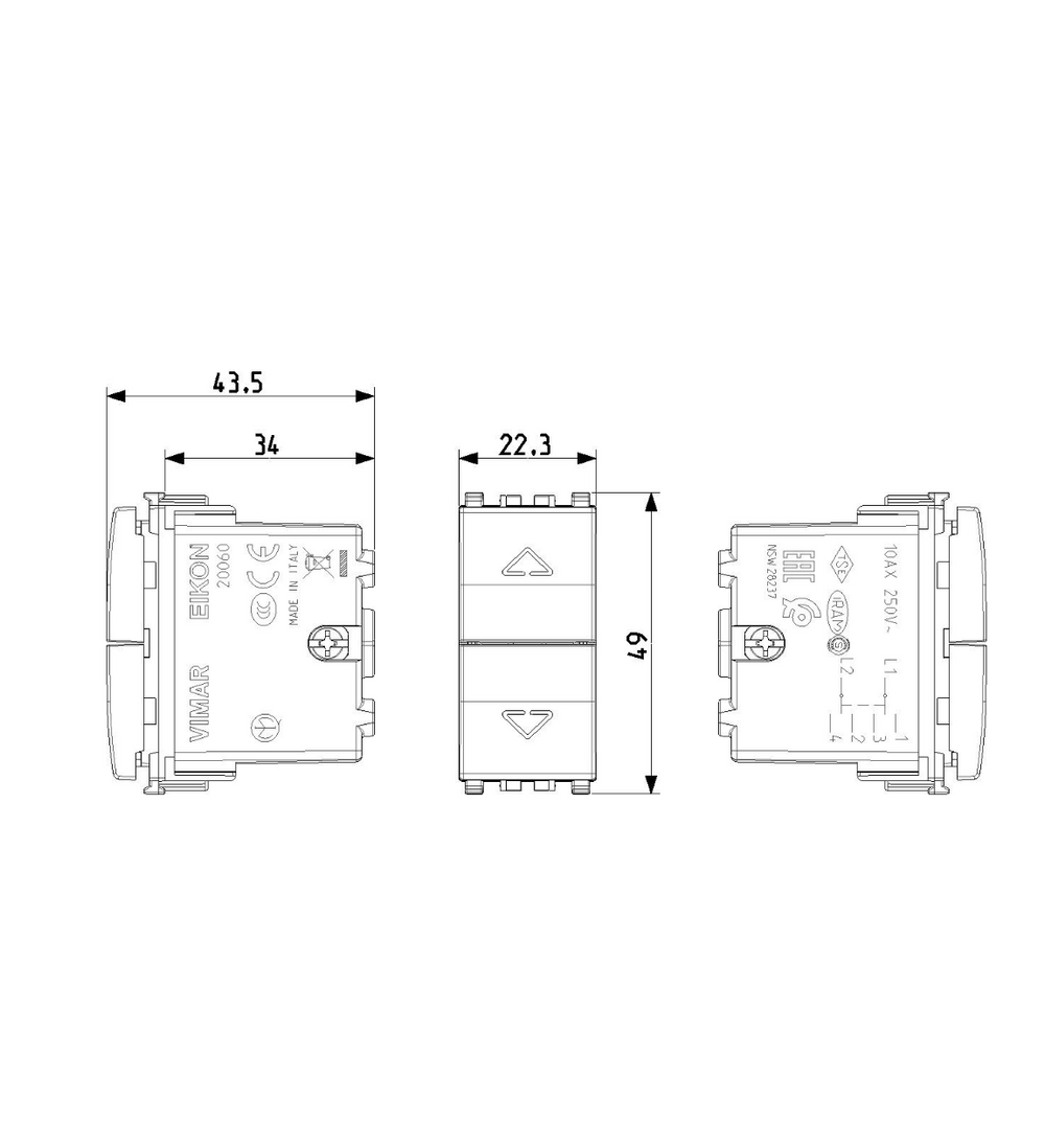 Vimar - Eikon 20060 2-Way Push Button - 2P 10AX, 10A, 250V, Directional Arrows